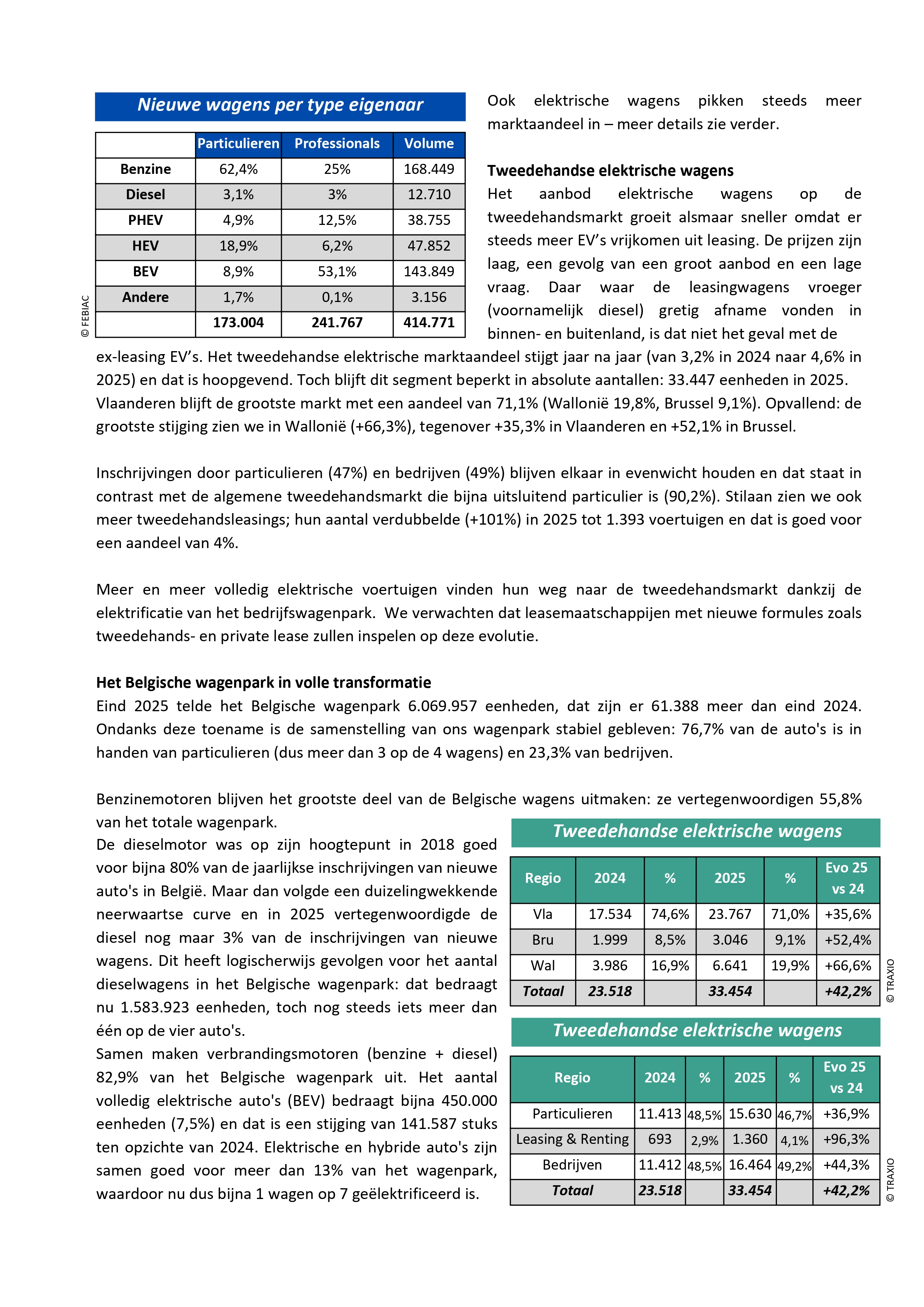 Analyse van de Belgische inschrijvingen en het wagenpark in 2025