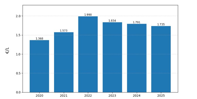 Hoewel de dieselprijs sinds 2023 in een fase van relatieve stabilisatie is gekomen, blijft deze