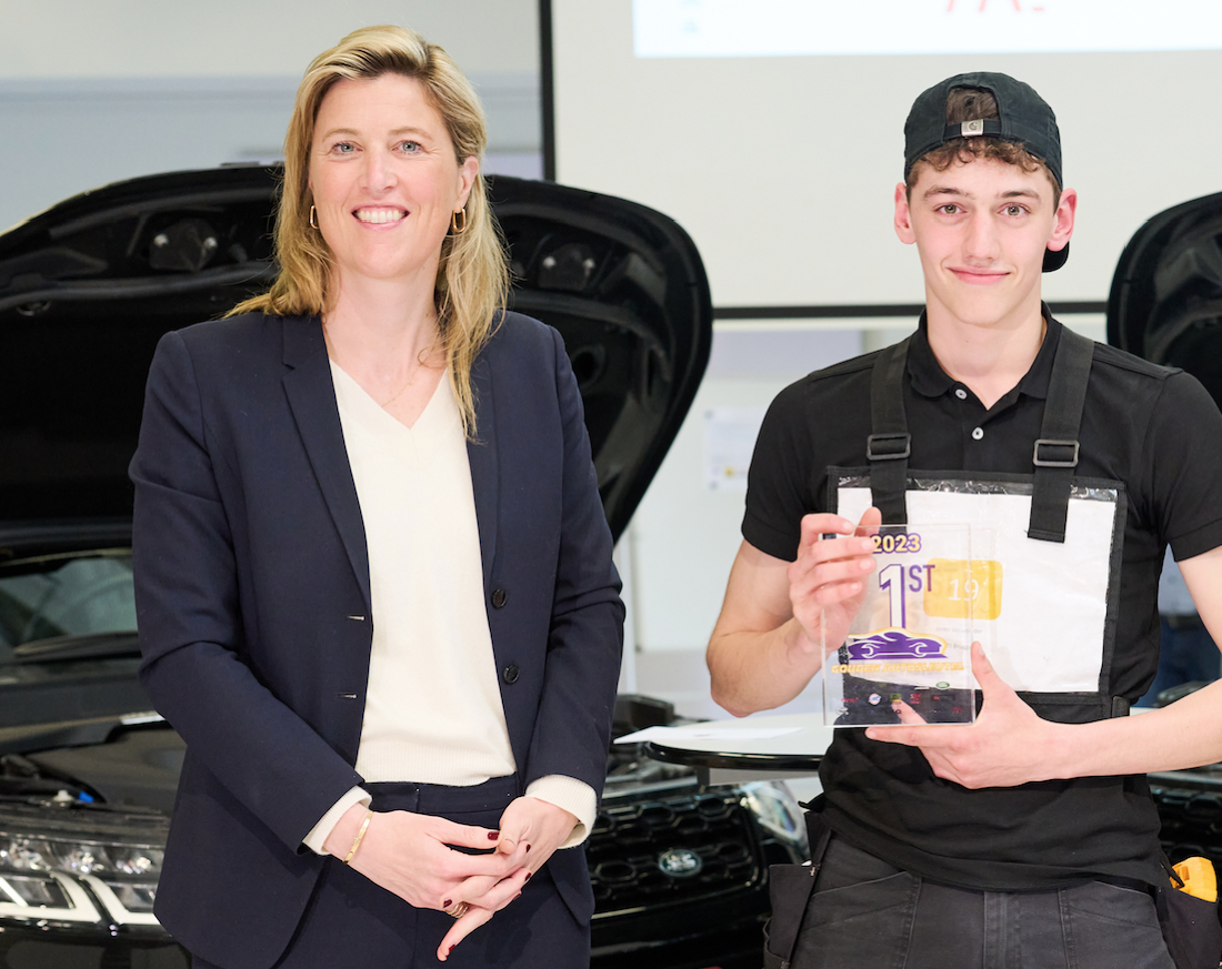 Joren Verweirder (VTI Brugge) wint de Gouden Autosleutel in aanwezigheid van Minister Annelies Verlinden