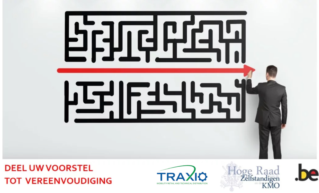 Vanuit TRAXIO willen we actief meewerken door vereenvoudigingen voor te stellen die onze leden ten goede komen. Daarom lanceren we samen met de Hoge Raad voor de Zelfstandigen en de KMO, de Dienst Administratieve Vereenvoudiging en de FOD Economie een oproep aan jullie om de administratieve lasten waarmee jullie geconfronteerd worden en die volgens jullie eenvoudiger kunnen, te melden via www.hrzkmo.fgov.be/vereenvoudiging.