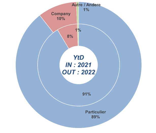 De tweedehandsmarkt krijgt het maand na maand moeilijker. Voor de negende opeenvolgende maand kleuren de cijfers rood. Ook in oktober zagen we dalende cijfers : -8,8% ten opzichte van 2021 en zelfs -21,9% ten opzichte van september 2020, toen de markt boomde na de eerste corona lockdown. Er werden afgelopen maand 53.192 occasies ingeschreven, een daling met 5.165 eenheden tegenover dezelfde maand in 2021. Over de eerste tien maanden gaat de tweedehandsmarkt er nu -10,8% op achteruit, met een gecumuleerd verlies van al -65.260 voertuigen vergeleken met vorig jaar. Volkswagen blijft aan de kop als meest populaire tweedehandsmerk, gevolgd door BMW en Opel terwijl Mercedes in oktober opnieuw over Peugeot wipte. Hierdoor krijgen we ook YTD dezelfde top 5.