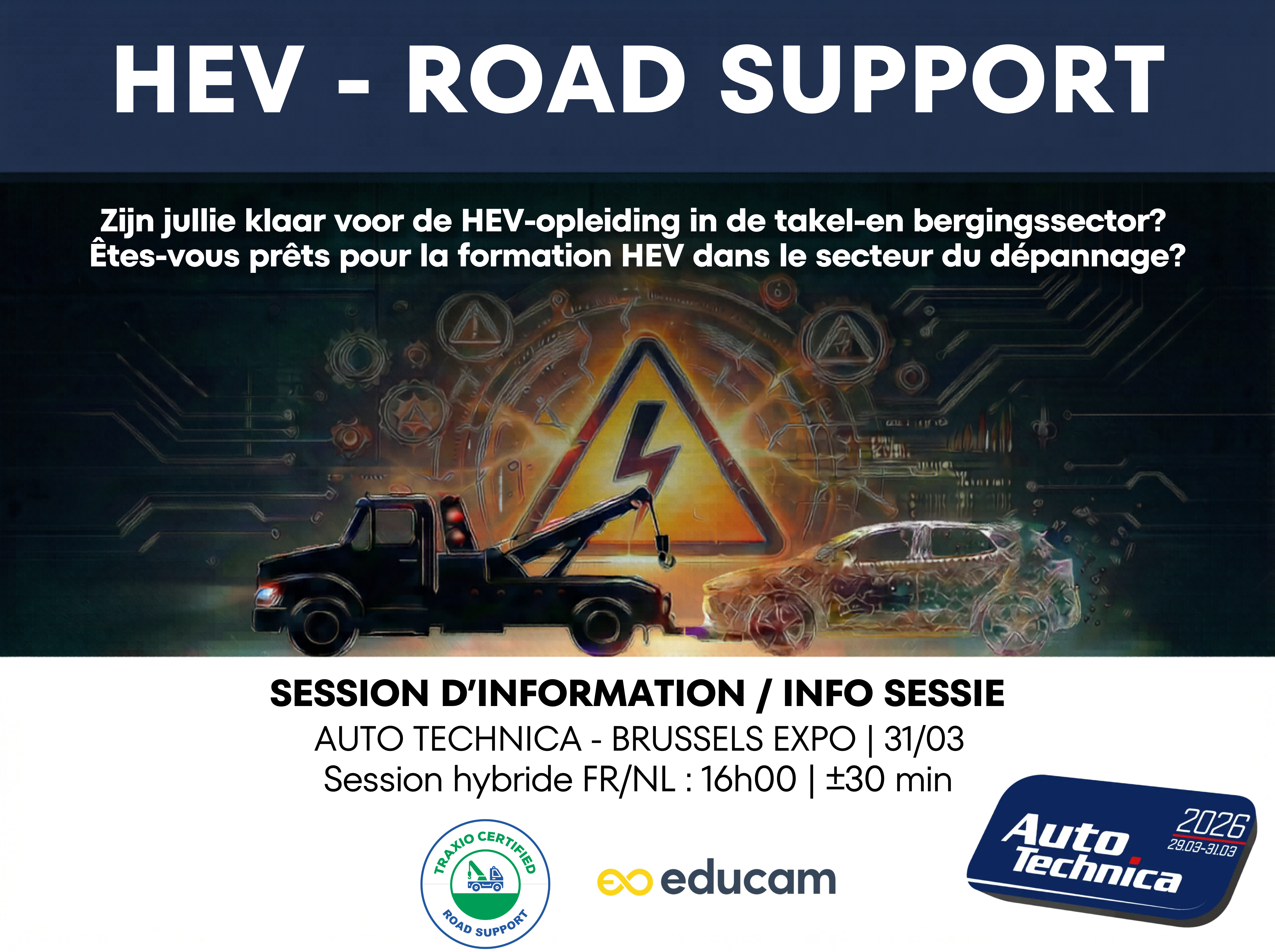Werken aan een geëlektrificeerd voertuig (HEV/EV) is geen improvisatie. Met risico's op elektrocutie, vlambogen of thermische branden is het gevaar reëel. Deze sessie van 30 minuten heeft als doel: