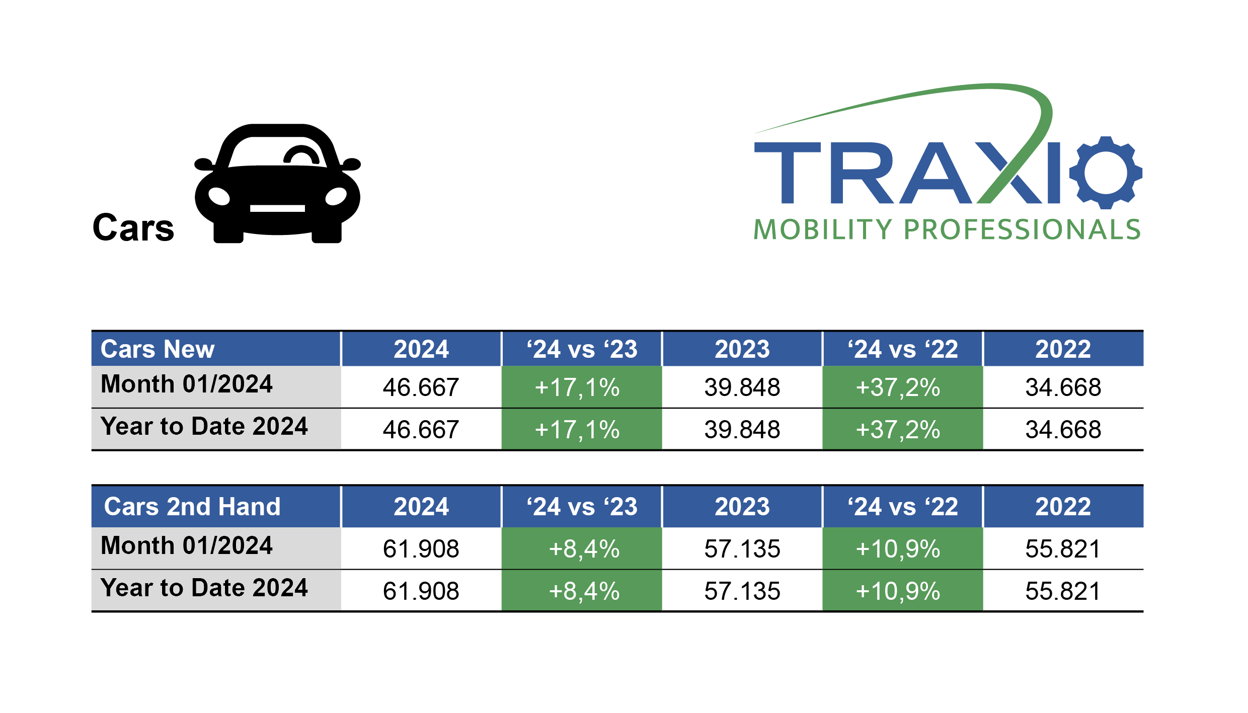 « En ce qui concerne les voitures neuves, l’euphorie reste de mise : en janvier, le nombre d’immatriculations a augmenté de +17,1 % ce qui représente quelques 46 667 voitures neuves immatriculées. Même constat pour les voitures neuves, les consommateurs semblent de plus en plus se tourner vers les véhicules entièrement électriques (+192,3%).