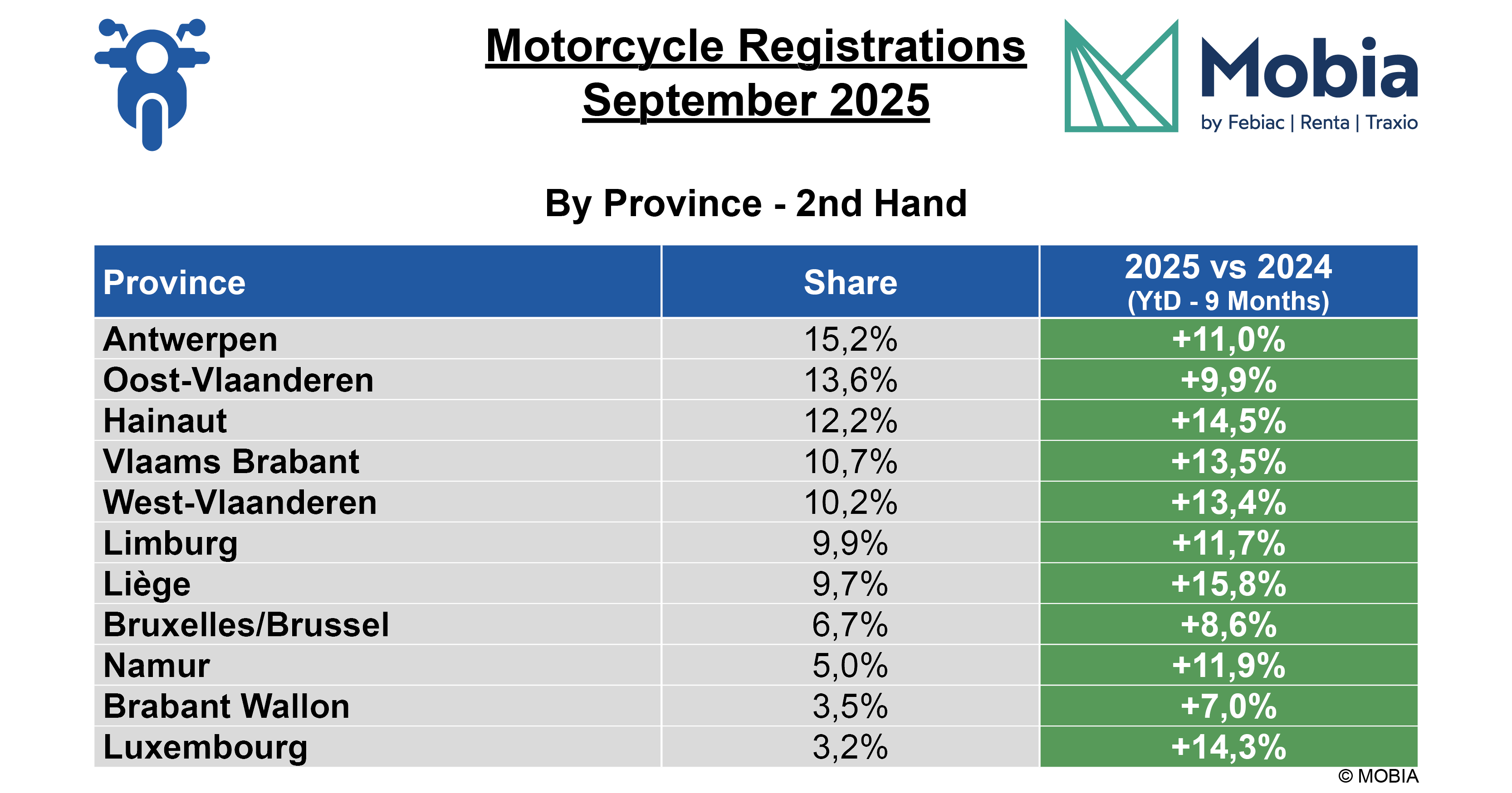 Immatriculations des motos d’occasion – par province (septembre 2025)